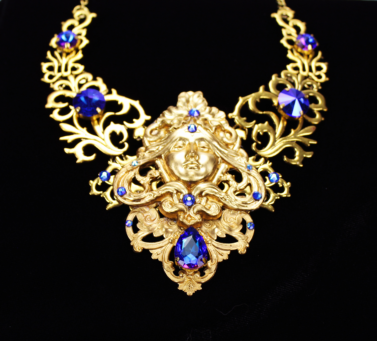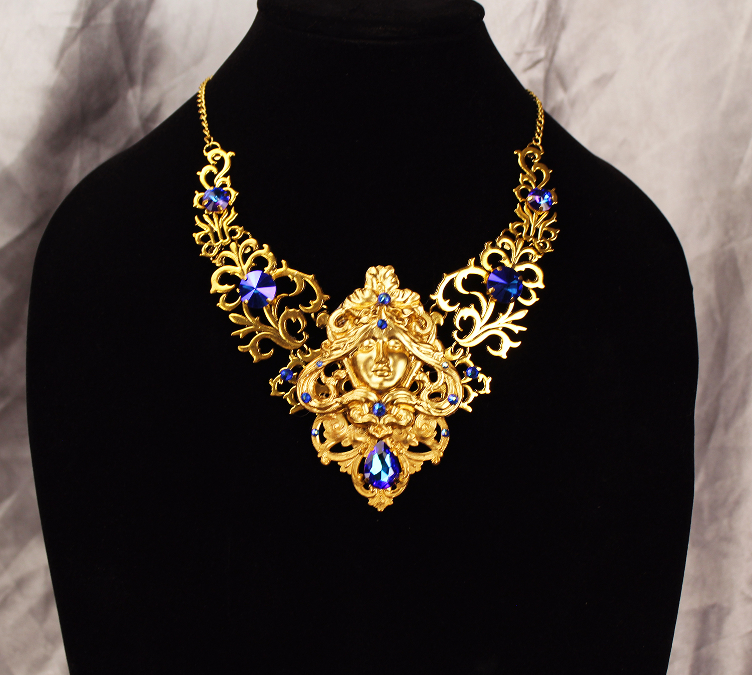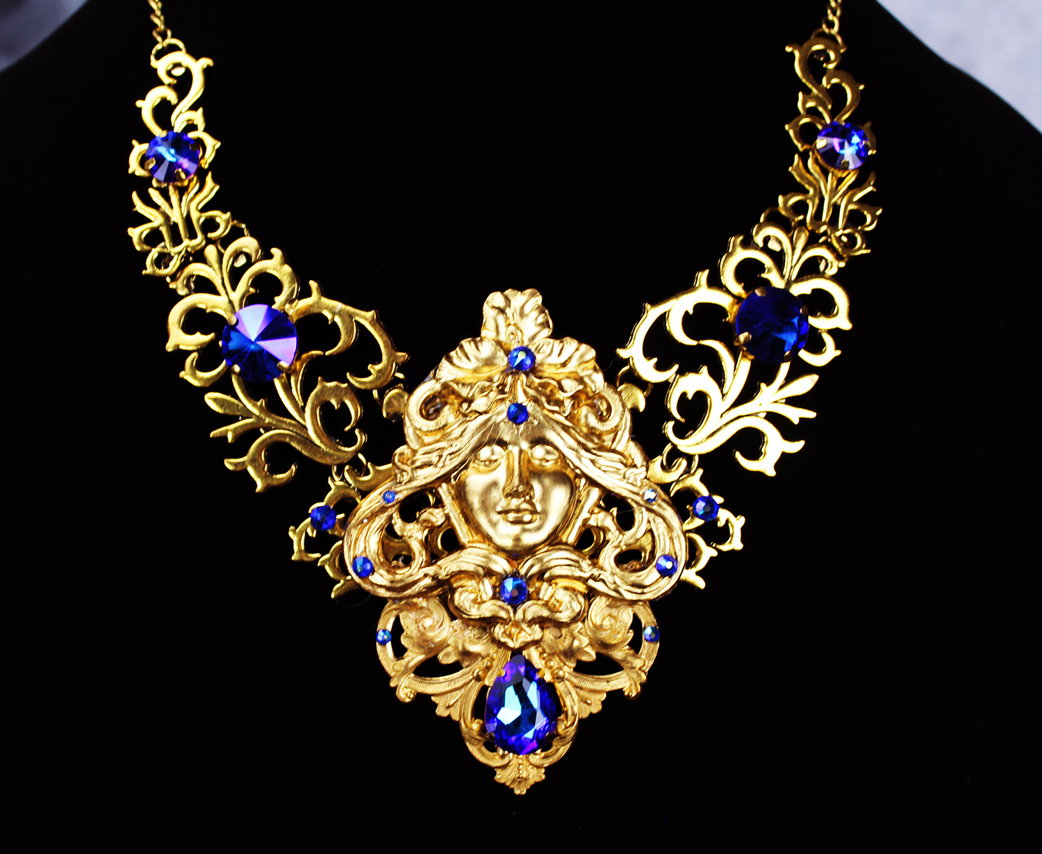 Woman Goddess Necklace in Purple, Blue and Gold (large)