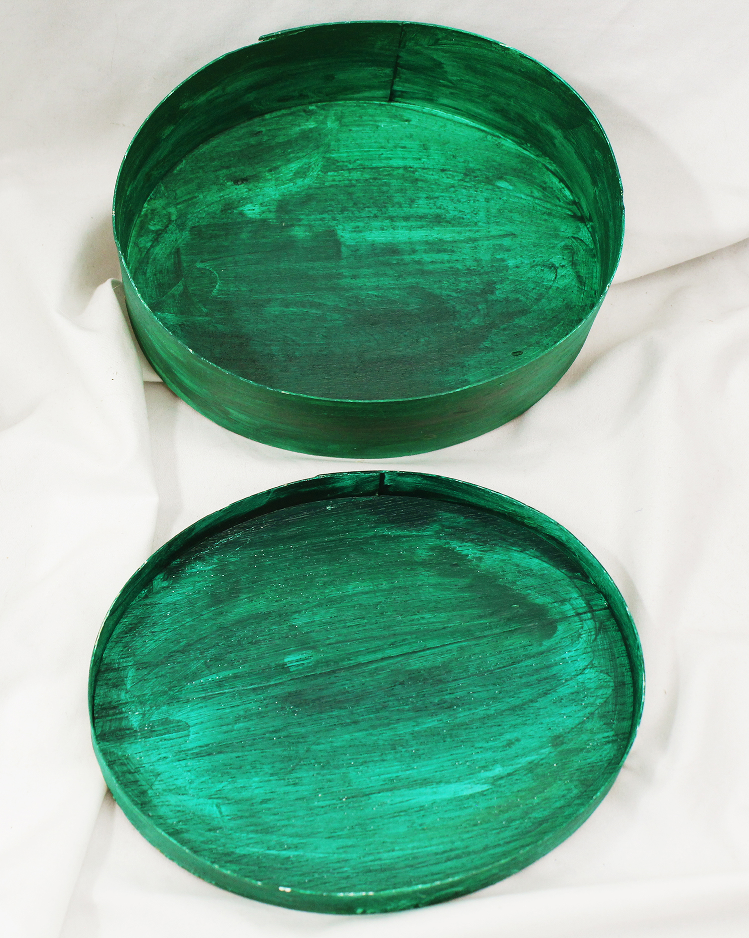 Gold and silver paint, tissue paper, acrylics, watercolors, textured paper, jewels, charms, metal objects.