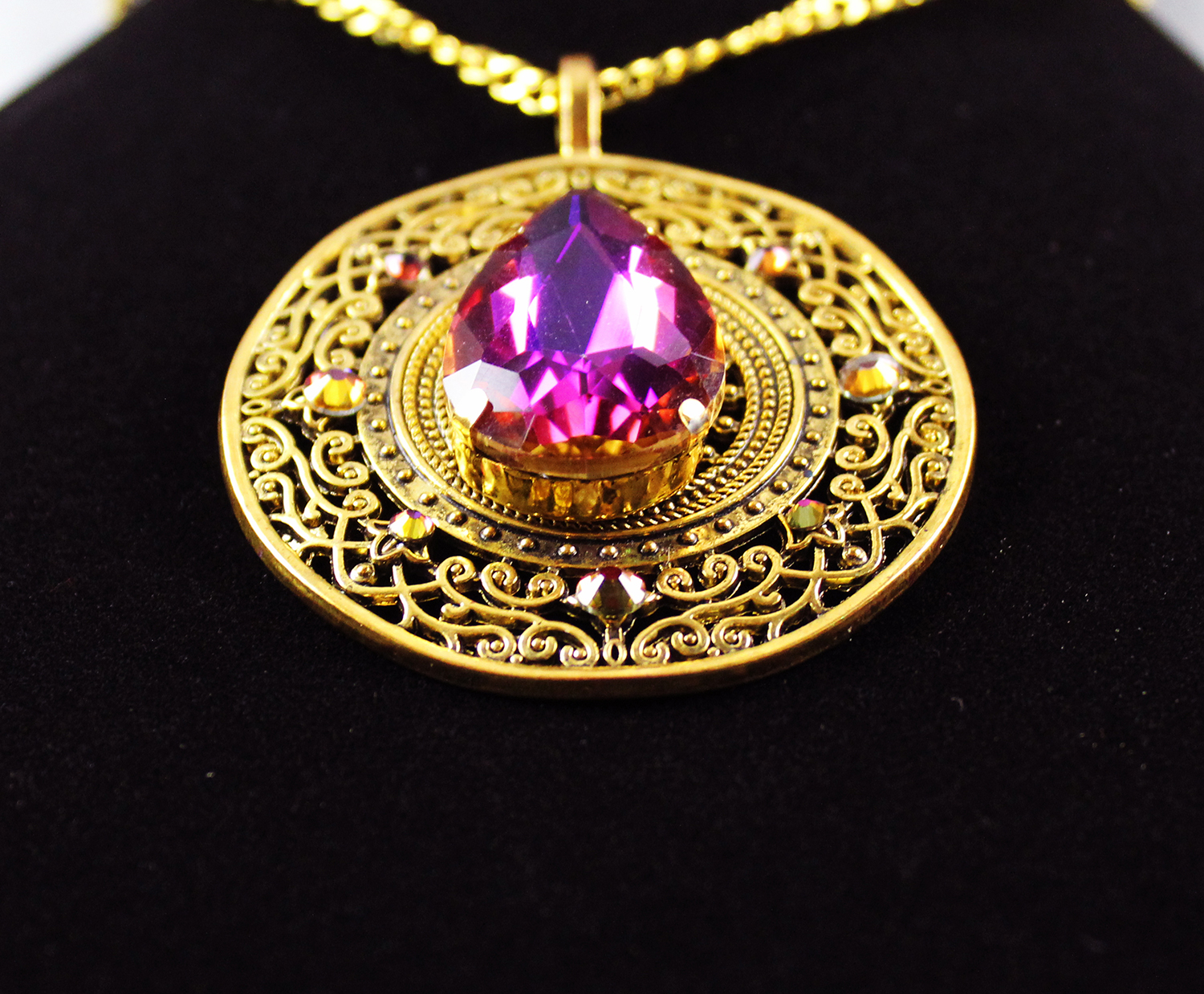 Gold and silver paint, tissue paper, acrylics, watercolors, textured paper, jewels, charms, metal objects.