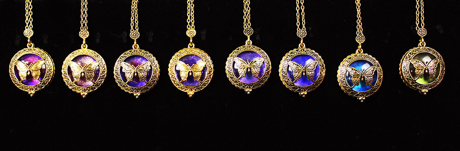 Gold and silver paint, tissue paper, acrylics, watercolors, textured paper, jewels, charms, metal objects.