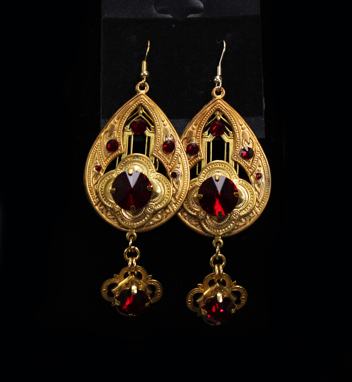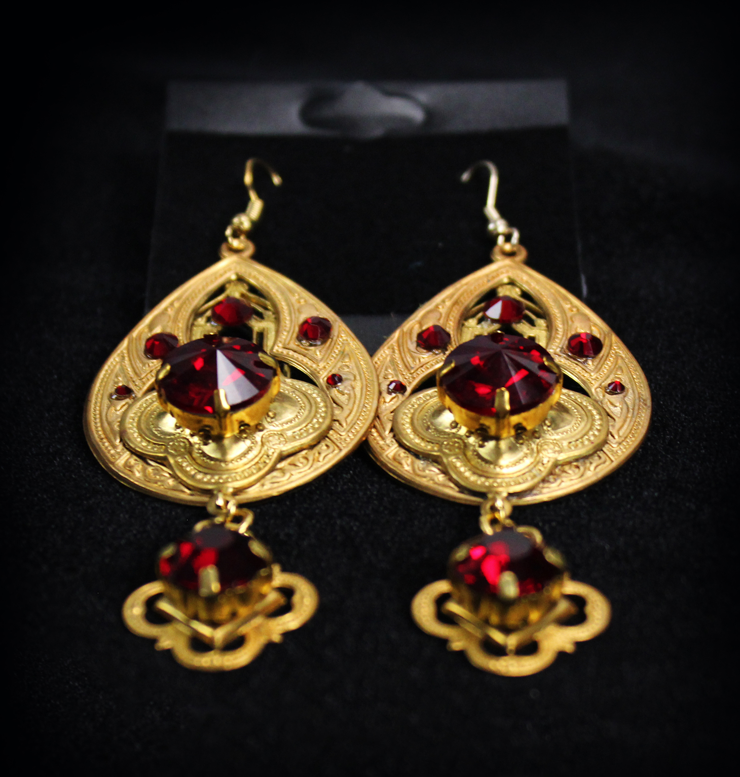 Gold and silver paint, tissue paper, acrylics, watercolors, textured paper, jewels, charms, metal objects.