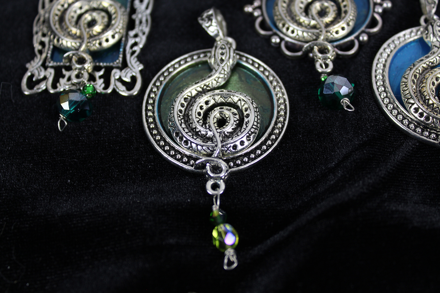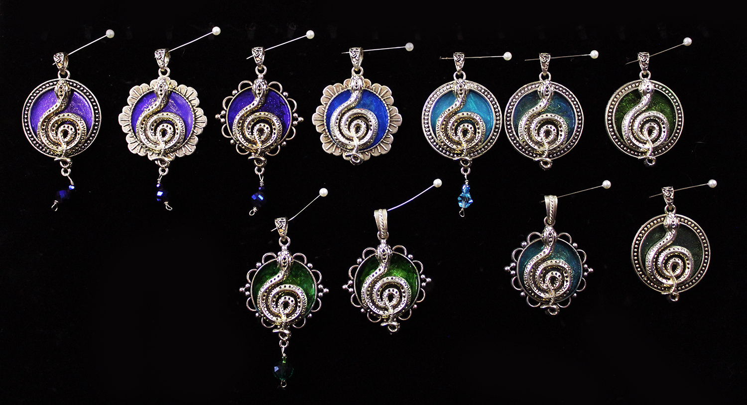 Gold and silver paint, tissue paper, acrylics, watercolors, textured paper, jewels, charms, metal objects.