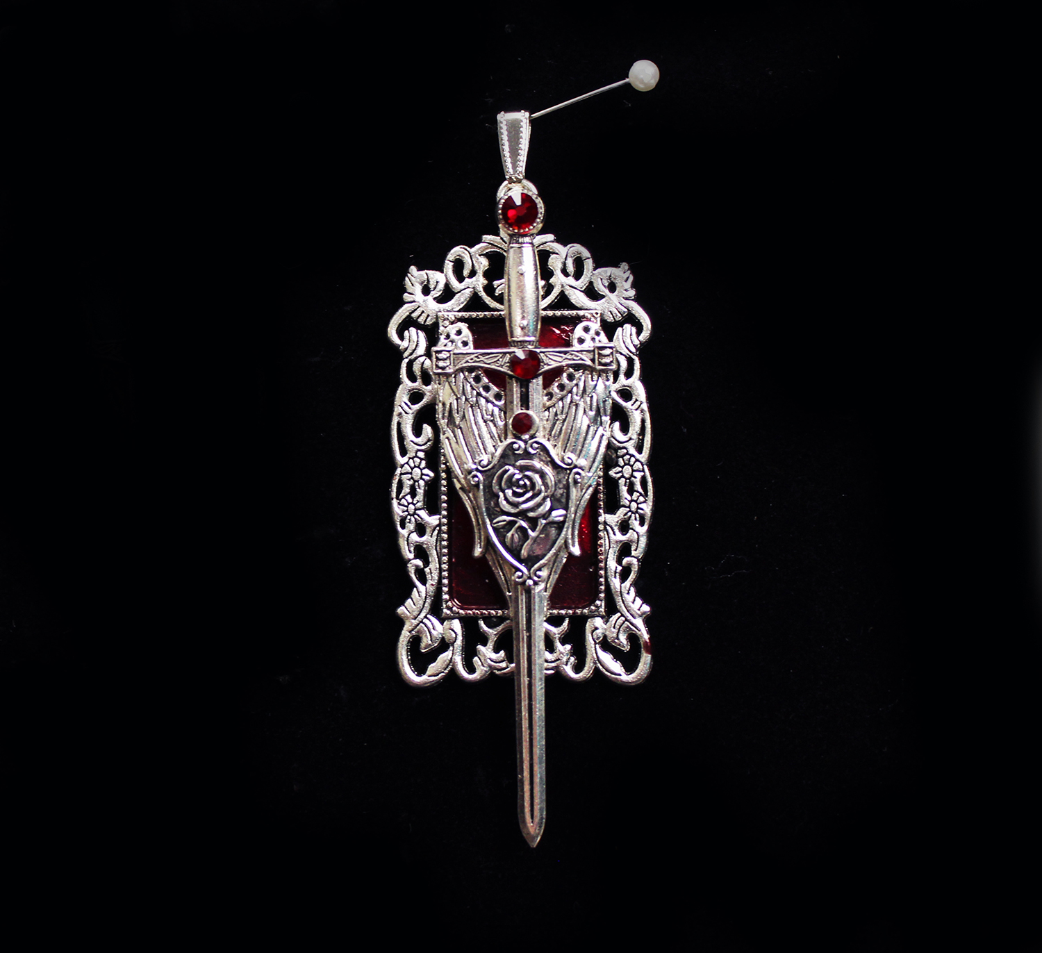 Sword with Wings and Rose in Silver and Red (pendant)
