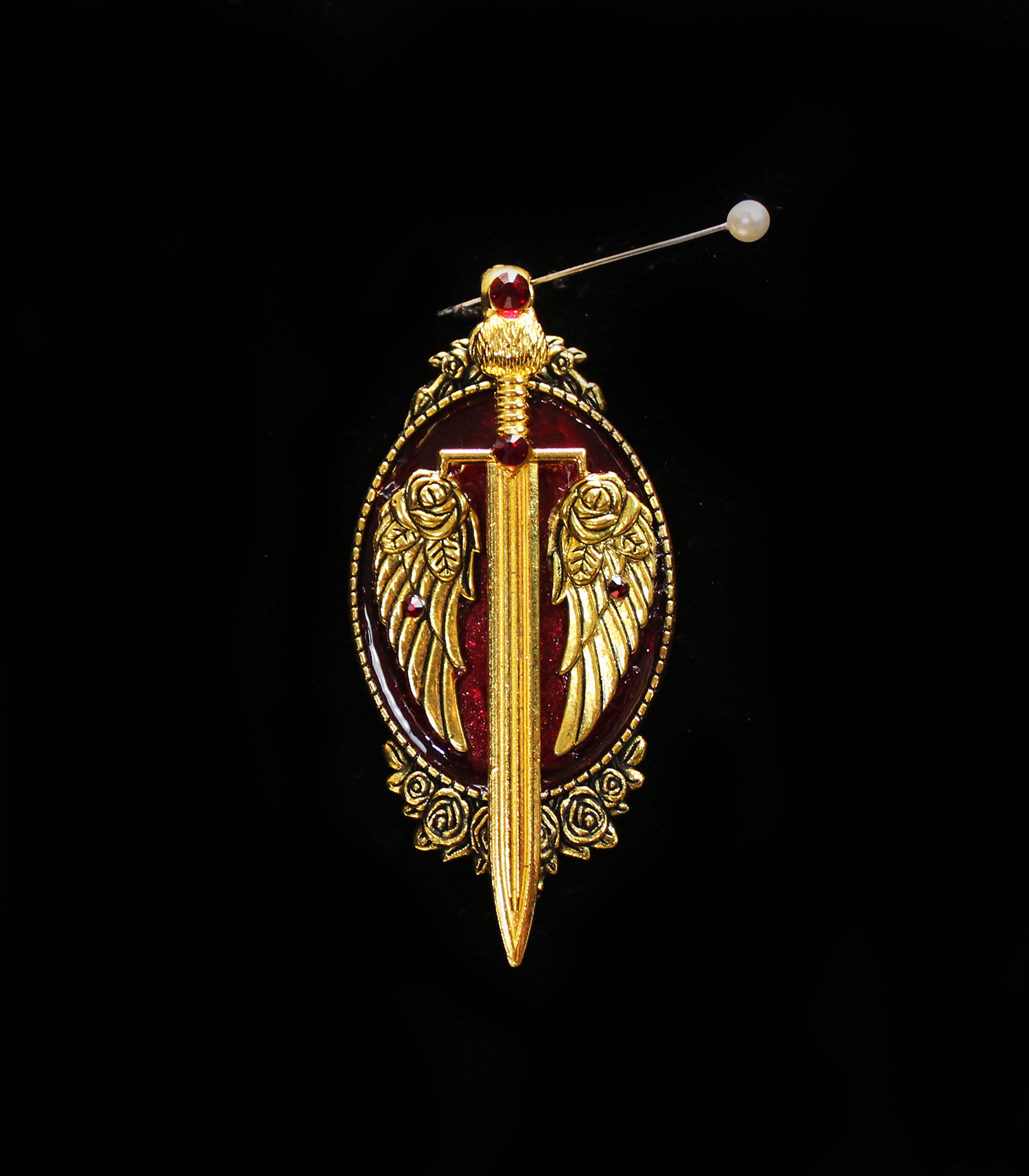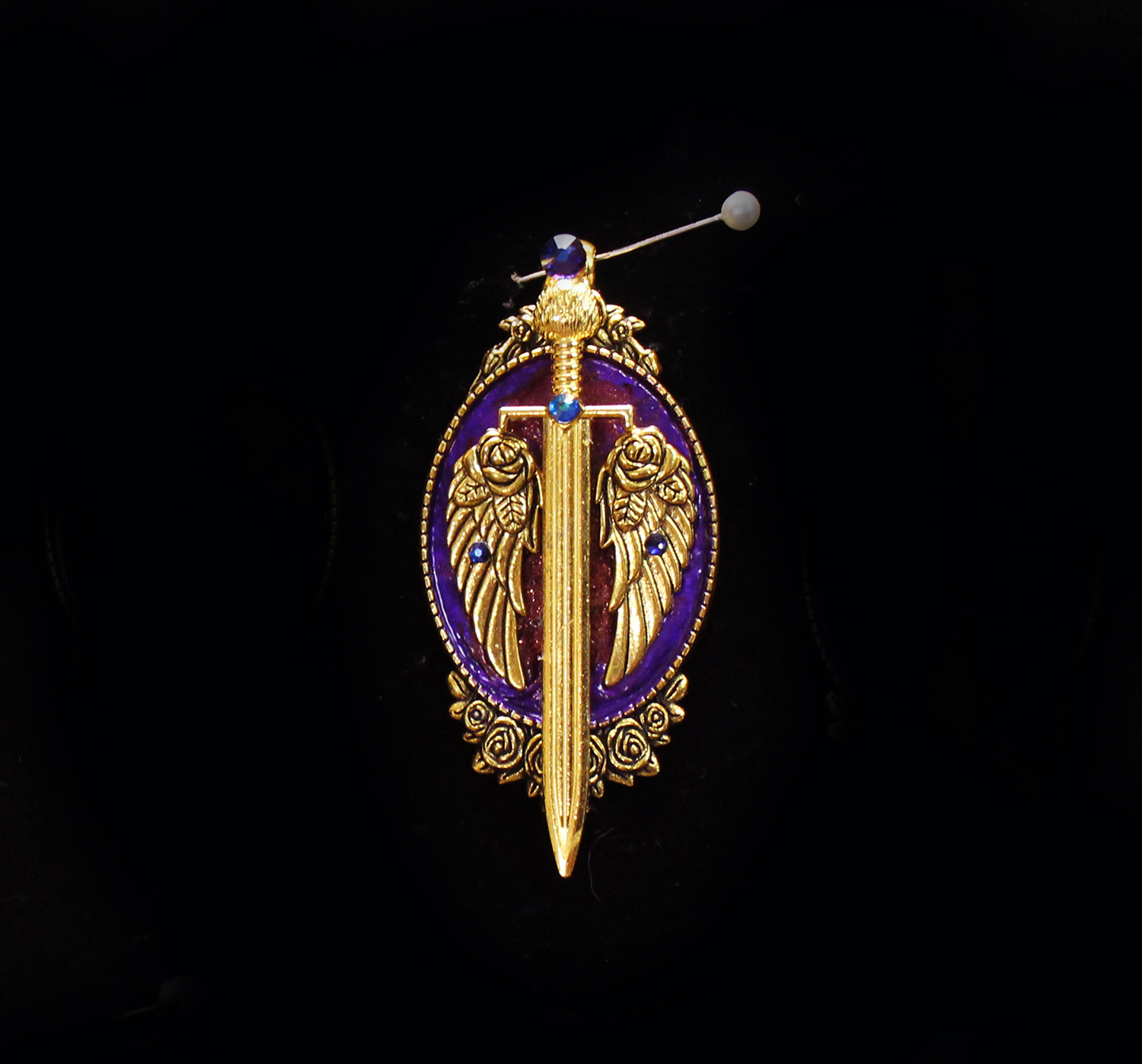 Sword with Wings and Roses in Gold and Multicolor (pendant)