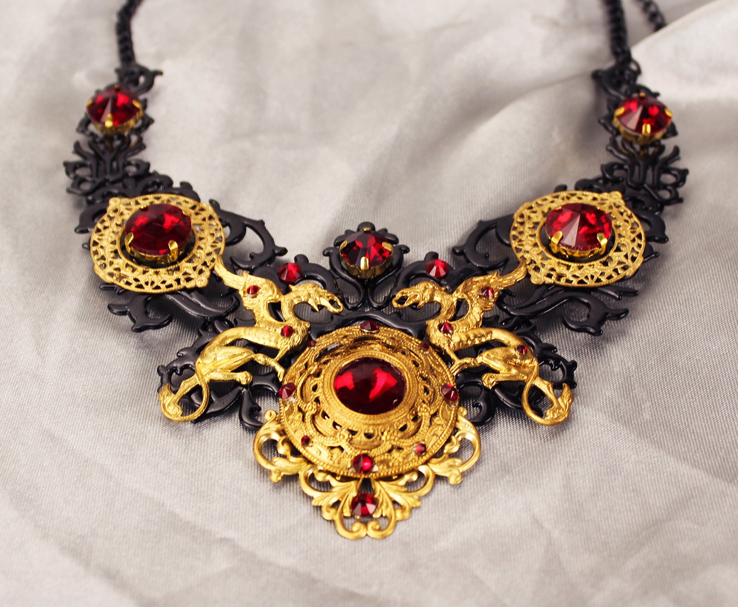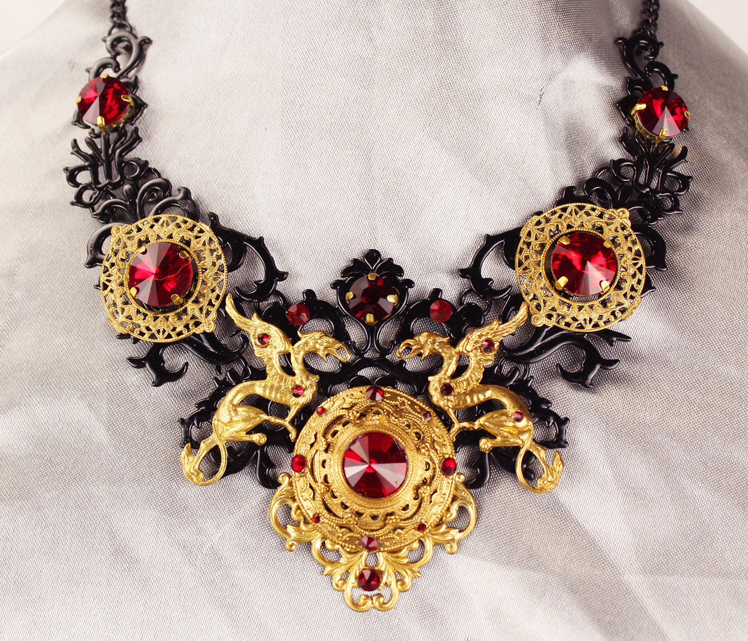 Gryphon Dragon Necklace in Red Gold and Black (large)