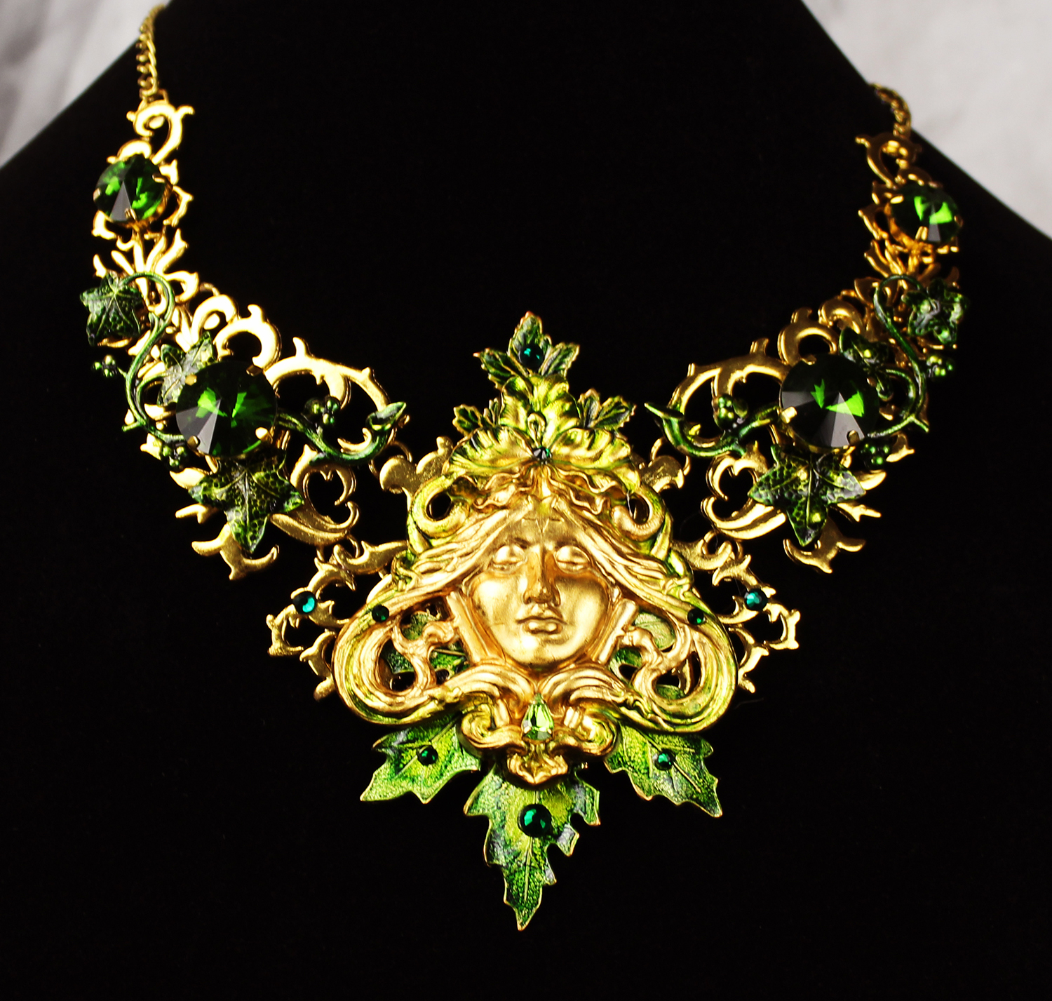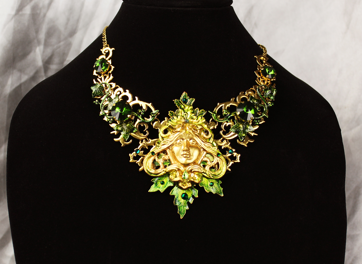 Woman Goddess Leaves Necklace in Gold and Green (large)