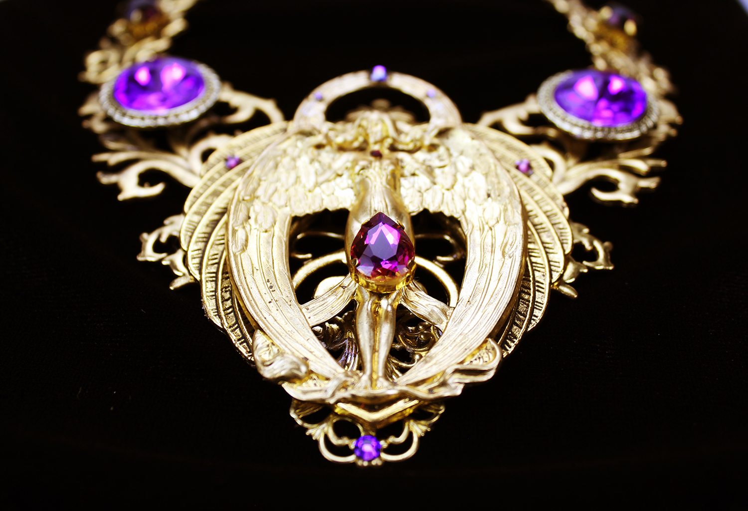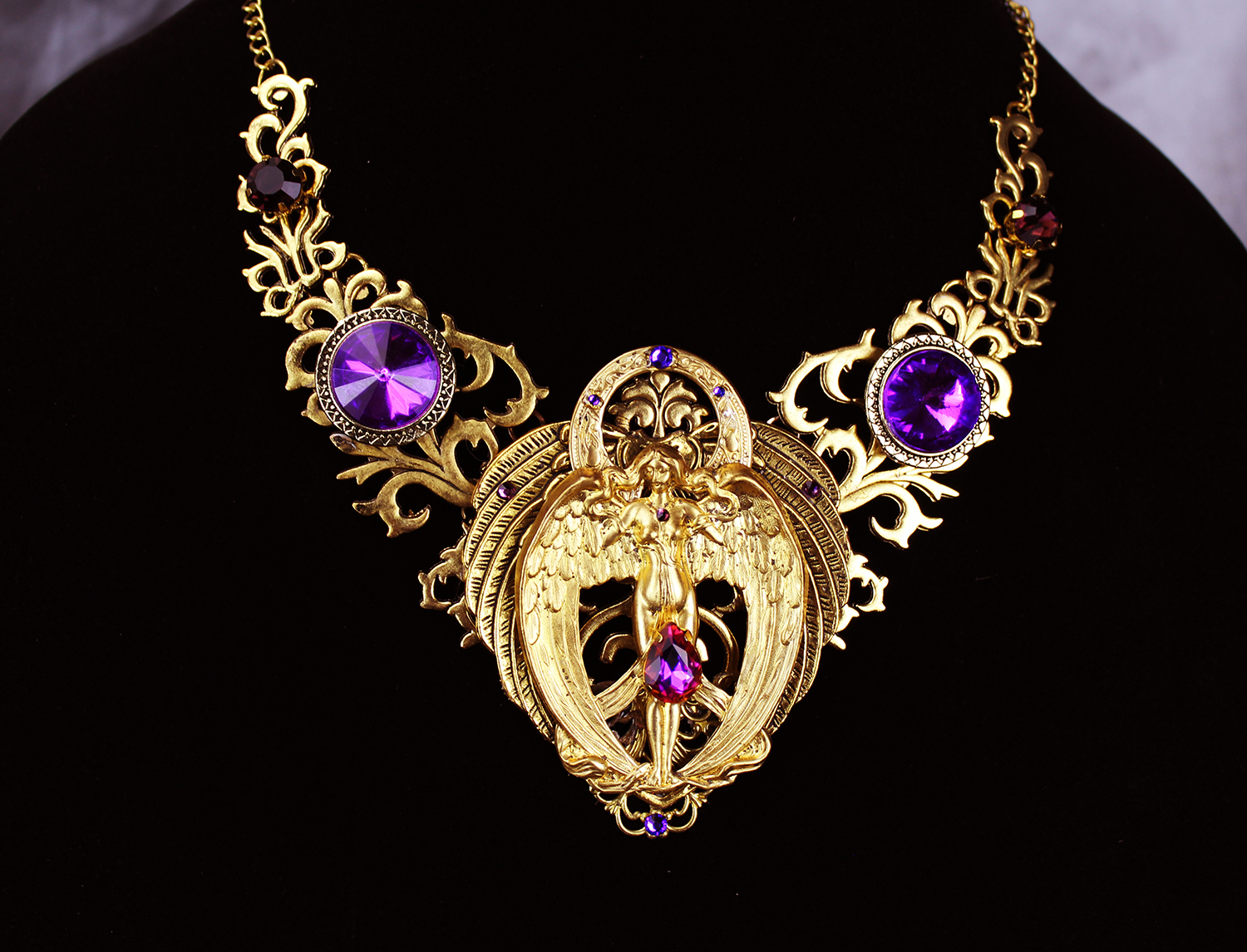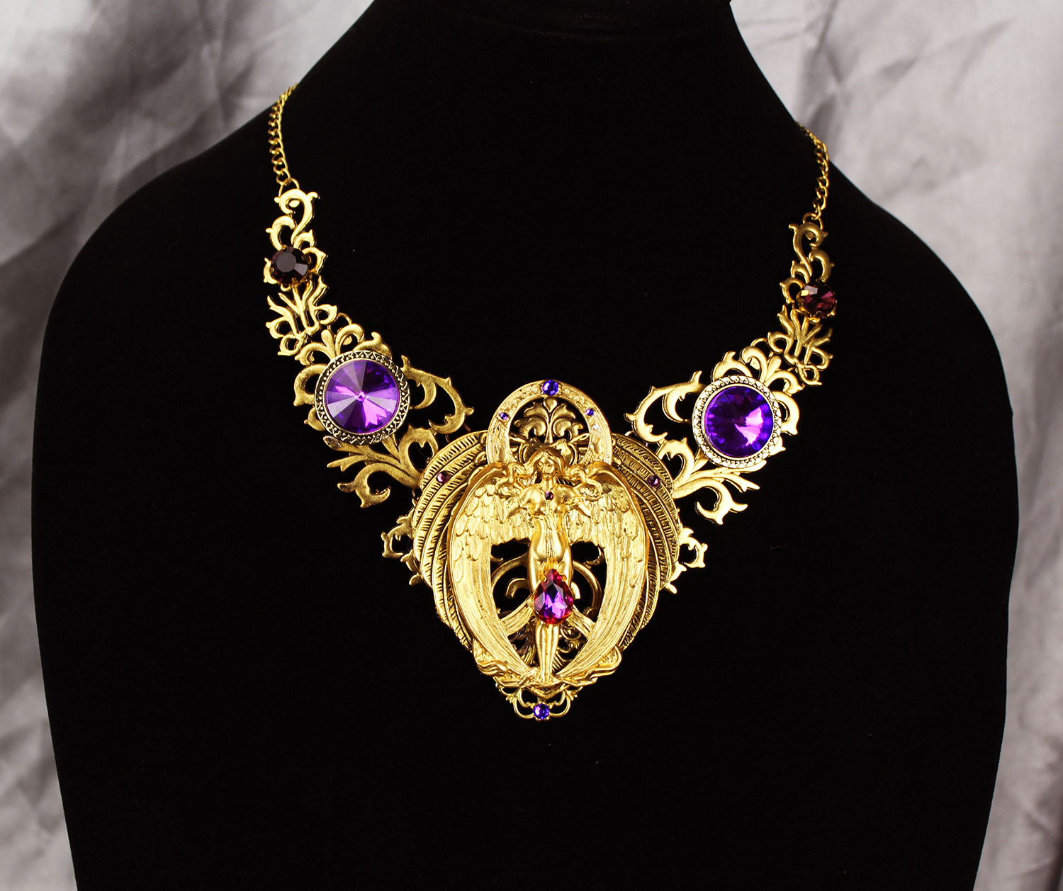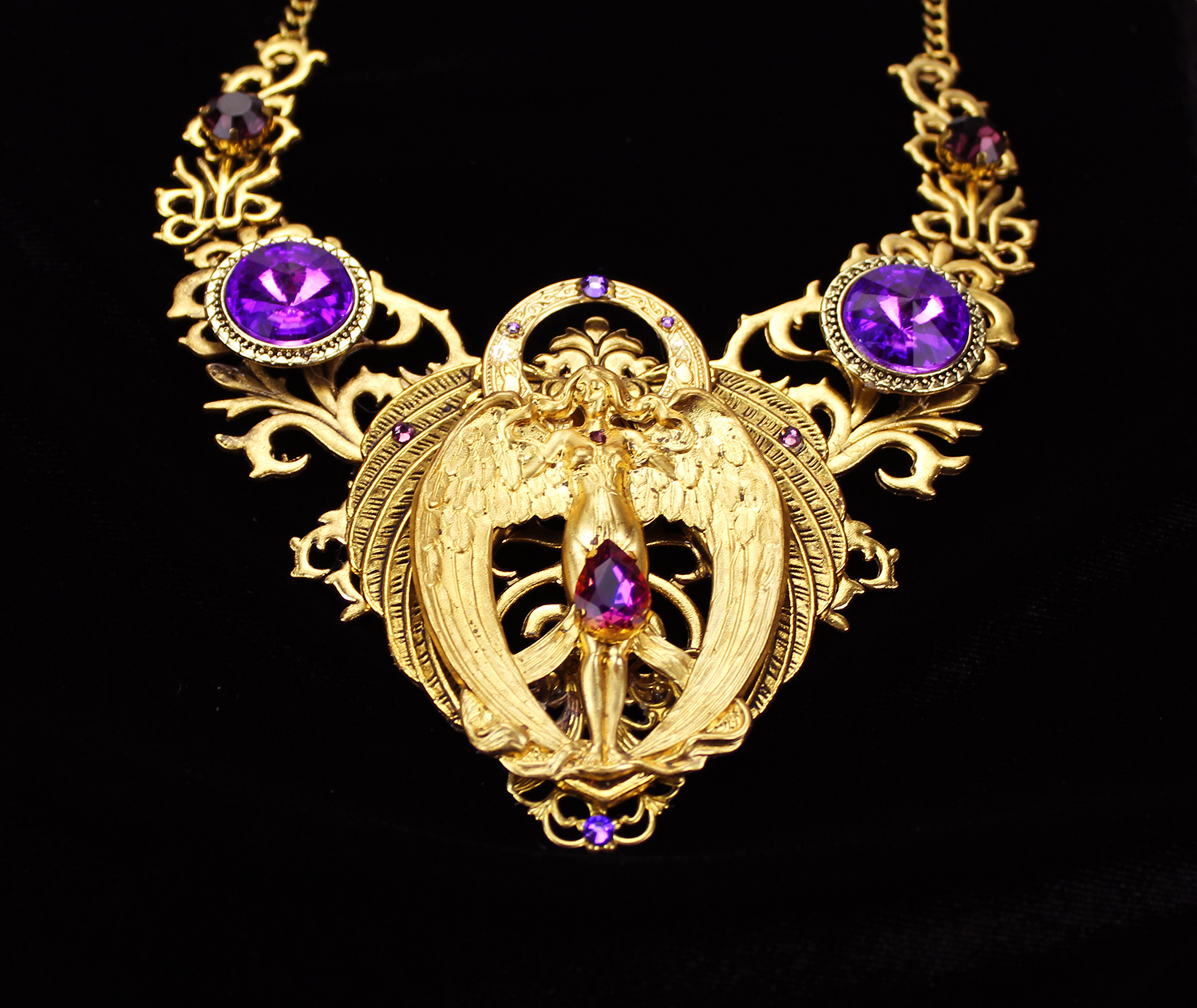 Winged Angel Goddess Necklace in Purple and Gold (large)