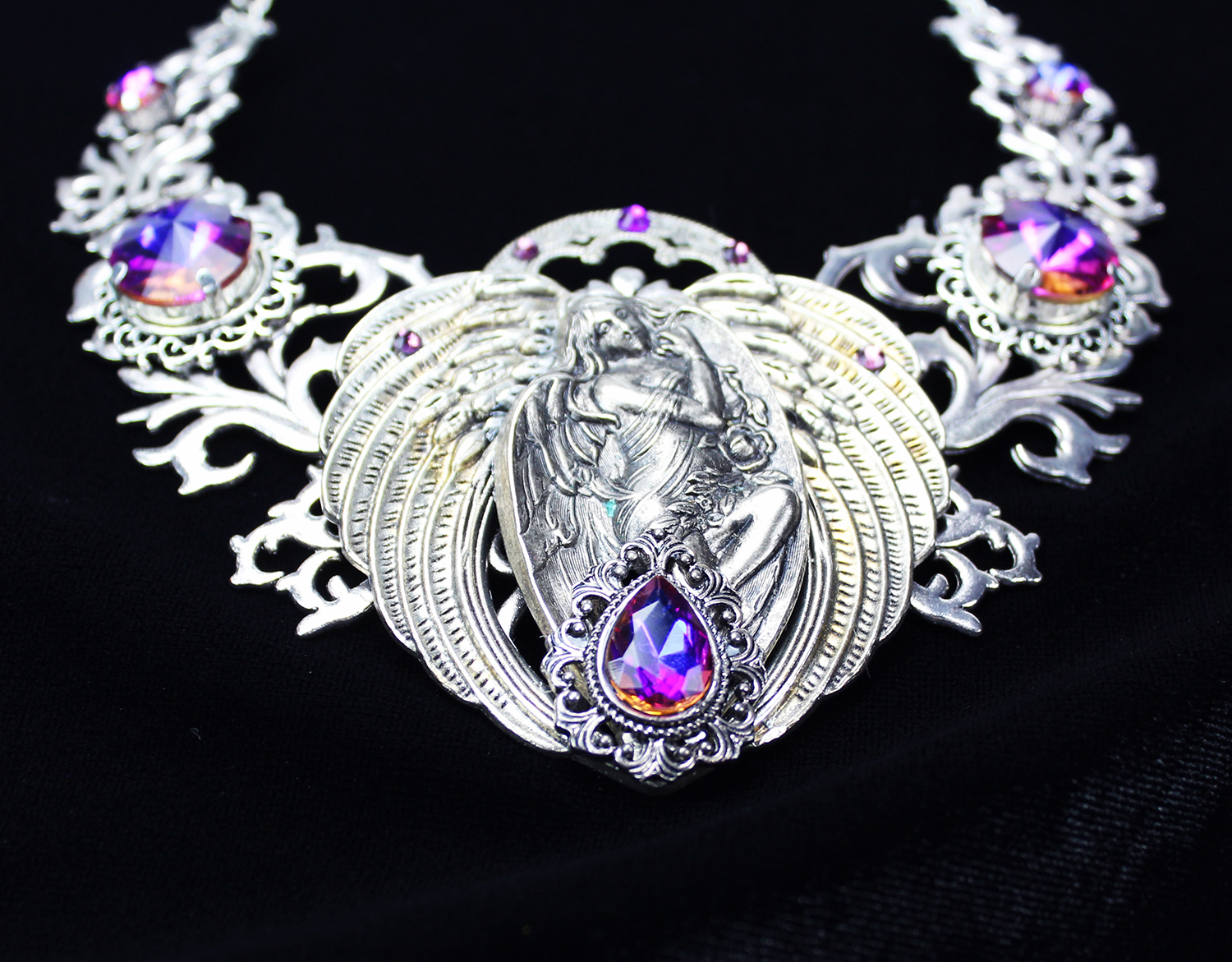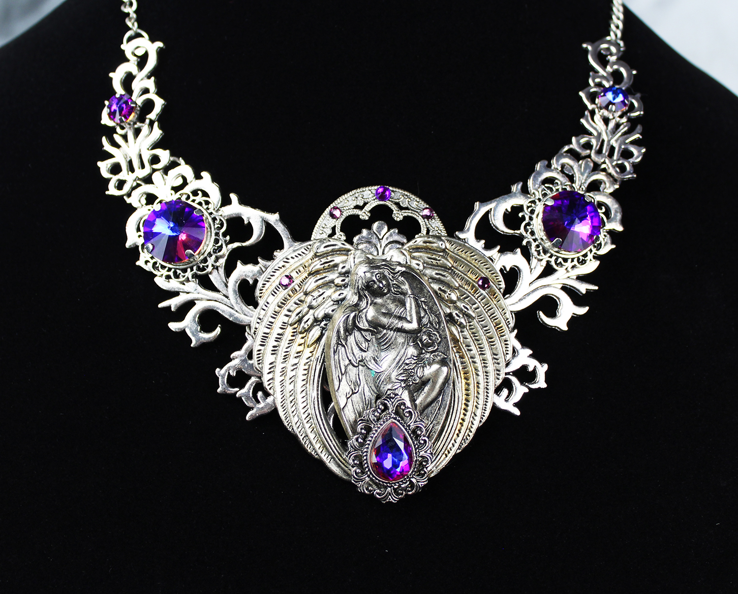 Winged Angel Goddess Necklace in Purple and Silver (large)
