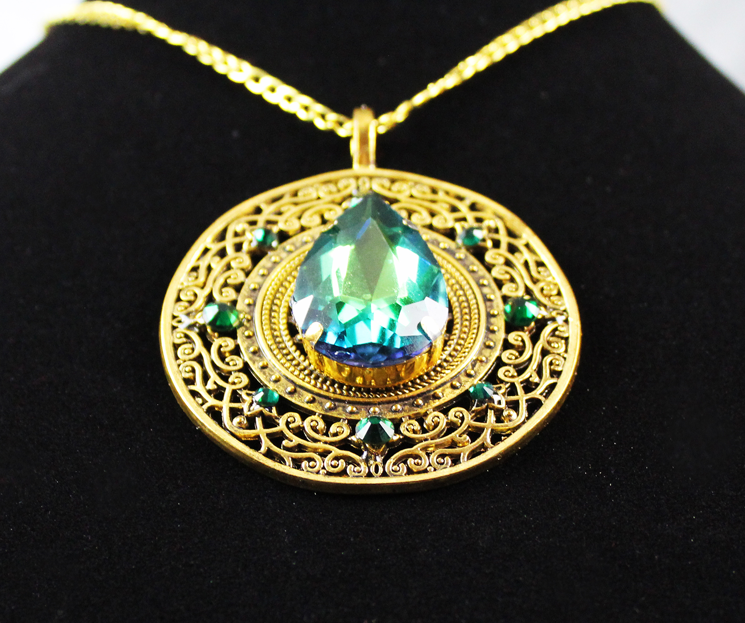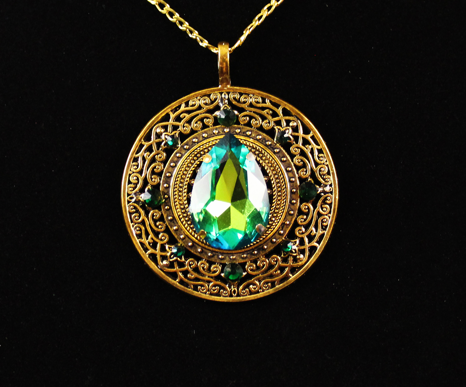 Gold and silver paint, tissue paper, acrylics, watercolors, textured paper, jewels, charms, metal objects.