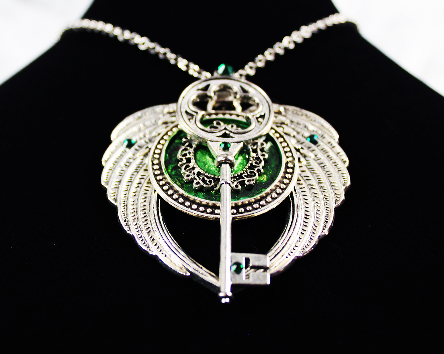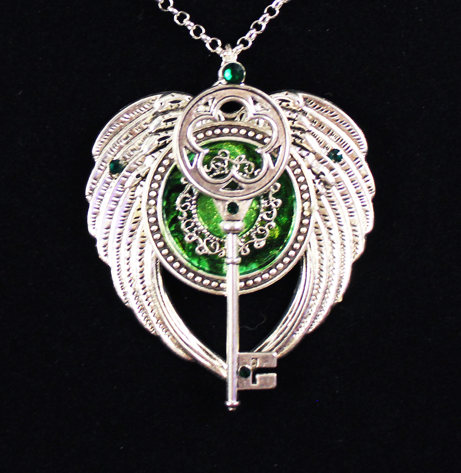 Key with Wings in Green and Silver (pendant)