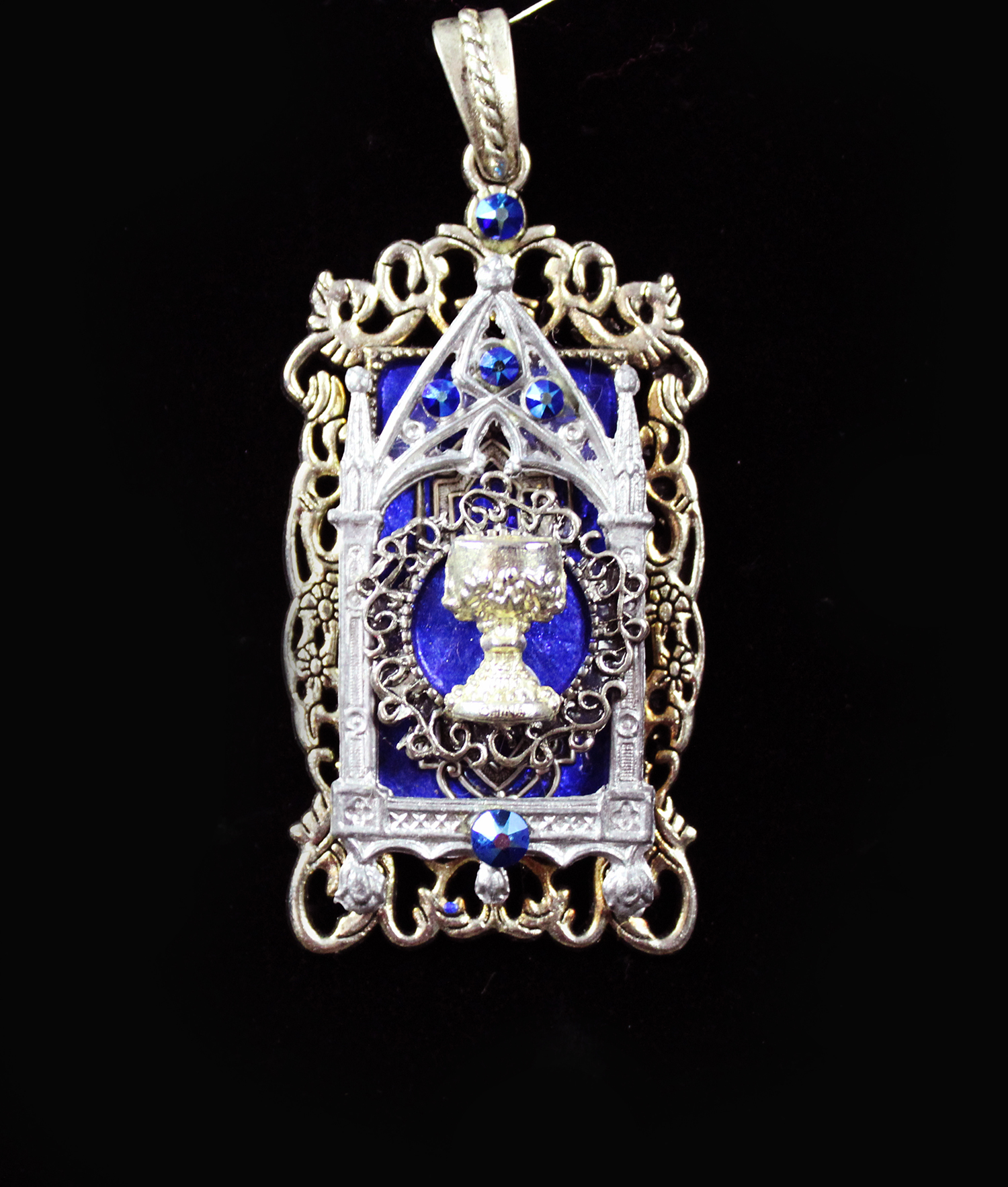 Grail Chalice Shrine in Blue-Purple and Silver (Pendant)